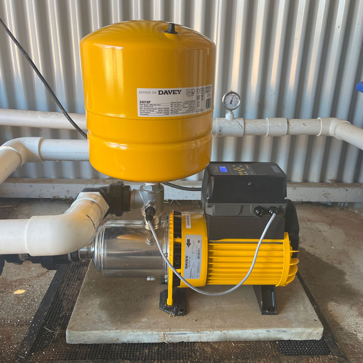 At the core of the installation is the Davey DynaDrive Pro DD160-19, an all-in-one pressure system with variable speed drive to ensure consistent pressure with multiple taps. With stainless steel impellers, built-in air purging, it was engineered to thrive in demanding, high-use environments.