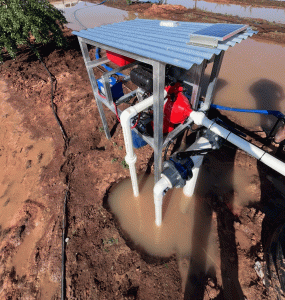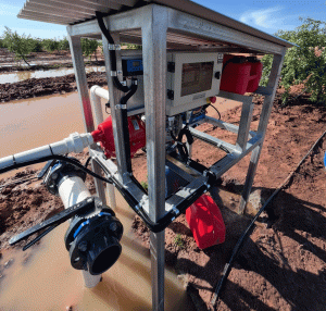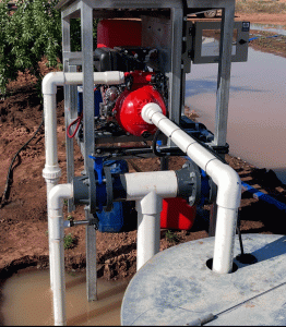 Main use: Automated, off-grid drainage system for removing excess water from low-lying areas of an almond orchard and recycling it back to the main dam, ensuring optimal soil conditions for almond trees.