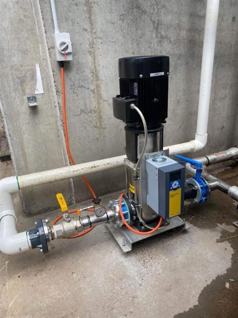 The installation was carried out by The Mudgee Pump Company, replacing the existing competitor pump sets. The VSD configuration was set up to ensure: