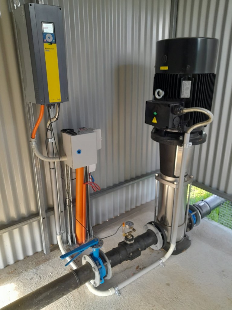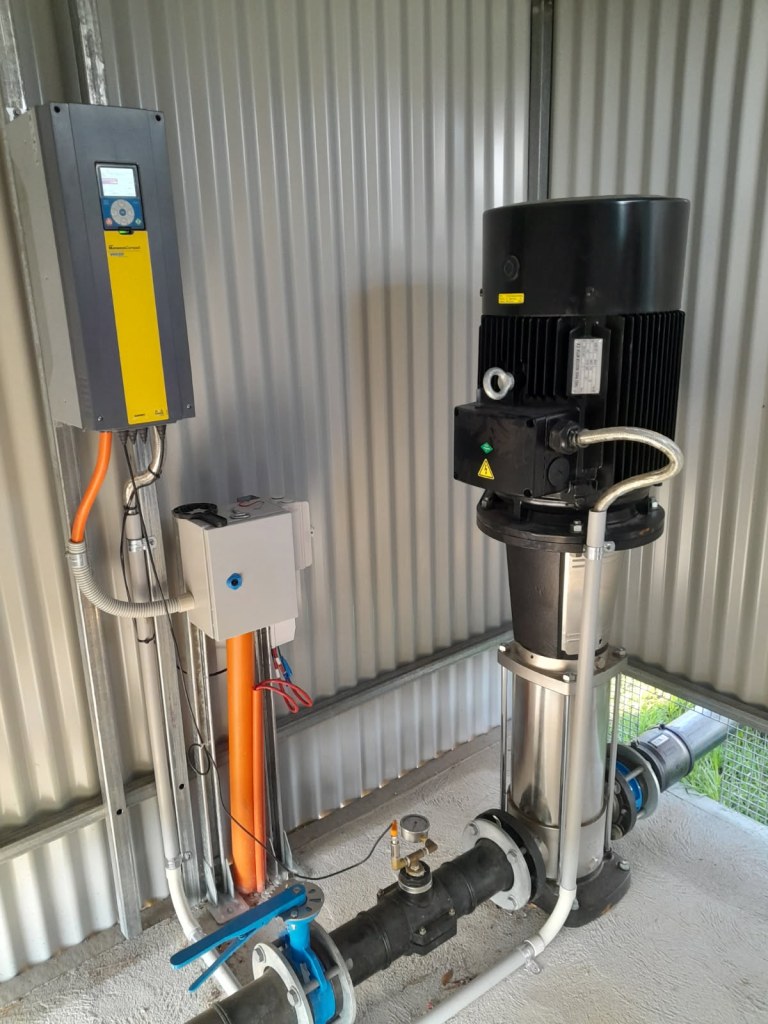 The Mudgee Pump Company recommended and installed a Davey VM90 Pump, paired with a VFD (Variable Frequency Drive) to allow adaptive pressure control.