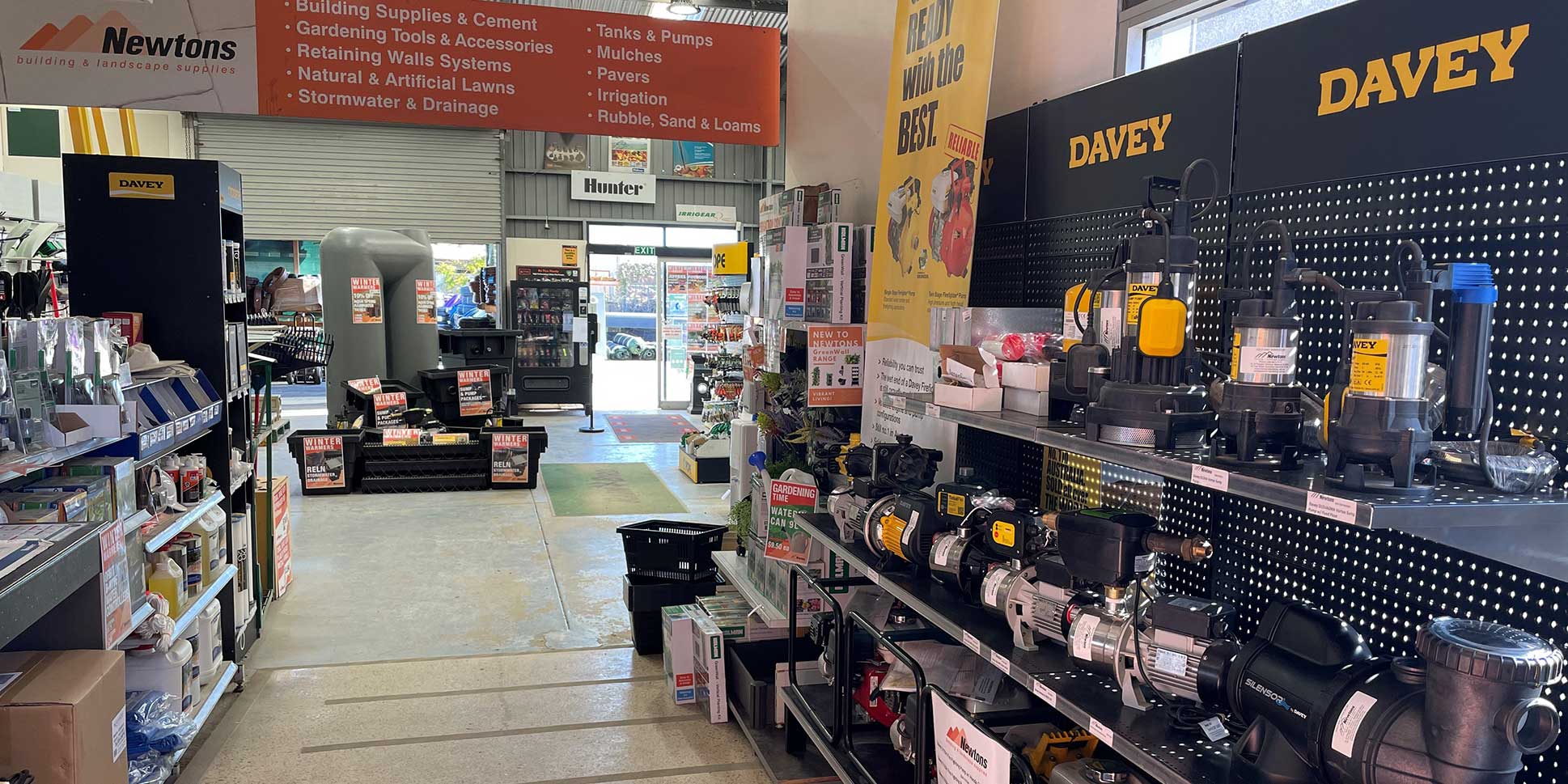 The business was started by Peter Masseroni, who originally supplied just sand and metal, and at 83 years old is still working in the business to this day. In 1996, Frank Ferella bought the business from Peter. Frank – with his passion for irrigation –introduced water products and pumps to the business. This has seen them expand to two storefronts with over 60 staff spread across Newton and another location in Evanston South. “We sell everything from building and landscape supplies to water tanks and pumps, it’s a good variety and one that keeps us busy. It also means we get to work with a great bunch of builders, plumbers and landscapers, and sometimes even all three working together!” “We receive over 2,000 phone calls a week from customers with general enquiries about products or looking to buy or replace something. We also transport all our supplies through our own trucks and run about 30 trucks from 2 to 30 tonne that can go as far south as Victor Harbor, north to the Barossa Valley, and out east to Pinnaroo.” Newtons has been working with Davey Water Products since at least 2005. “Davey is a reputable brand with a quality product which makes it easy to sell to our customers. Plus, the fact that most of the spare parts are manufactured locally is a real help and makes it easy for us to service customers if there are any issues.”