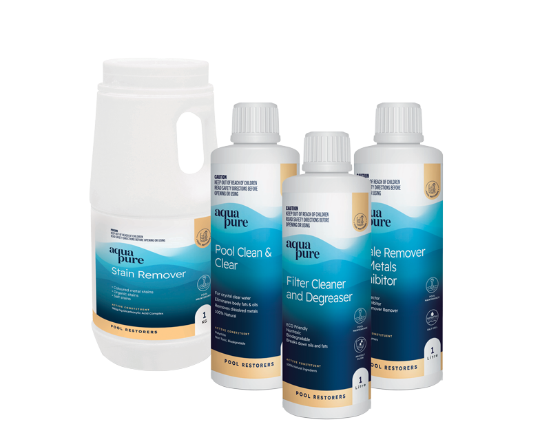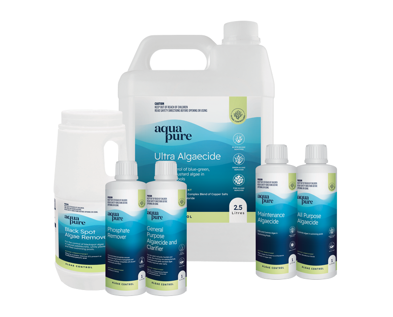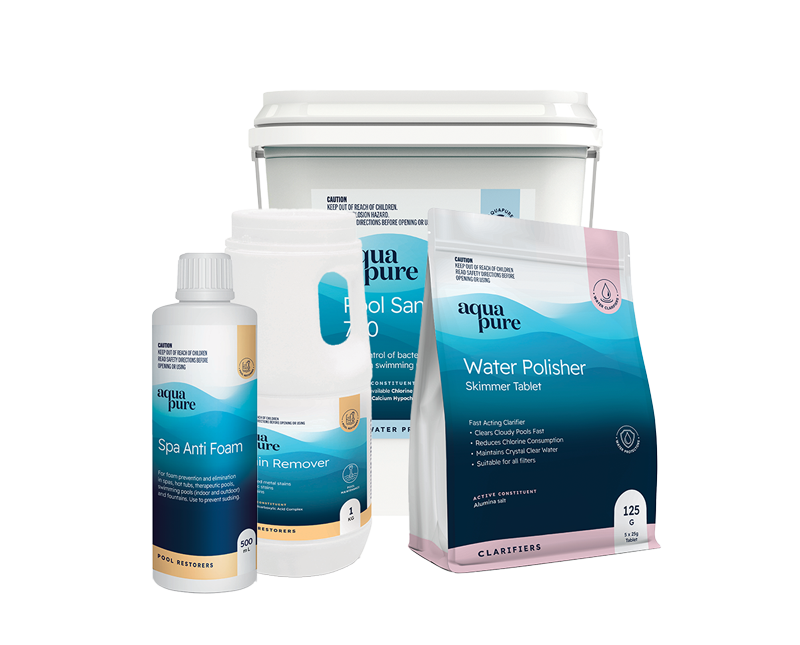 AquaPure is a comprehensive range of Australian-made pool and spa solutions that maintain healthy, hygienic water year-round. Cost-effective, highly concentrated, and fast-acting formulas deliver quick and efficient results, saving you time and effort.  Each colour-coded product includes a specialised blend that targets common concerns such as algae growth, chemical fluctuations and cloudy water.  Trusted by pool professionals and homeowners alike for premium grade quality and reliability.